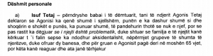 Me këtë letër, ai po kërkon që të përjashtohet prokurori Agron Uka nga ky rast si dhe të vendoset gjykim meritor lidhur me vrasjen e djalit të tij.