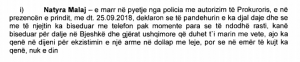 Kur ishte pyetur nga prokuroria për këtë deklaratë, ajo e kishte mohuar me arsyetimin se i kishtë thënë policisë që ta fshinin dhe ata t’i kenë thënë se kanë fshirë.