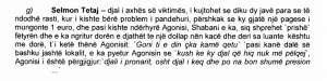 E djali i axhës së Agonisit, Selmon Tetaj, kishte treguar një rast që kishte ndodhur mes Agonisit dhe Shabanit, disa ditë para vrasjes.