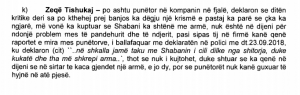 I ballafaquar me deklaratën në polici ditën e vrasjes kur kishte thënë se është takuar në shkallë me Shabanin dhe se ai i kishte thënë se i ka shkrepur arma, Tishukaj ka thënë se nuk i kujtohet.