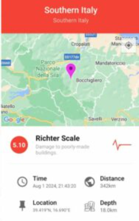 Një tërmet me magnitudë 5.1 të shkallës Rihter është regjistruar në Itali në Kalabri.